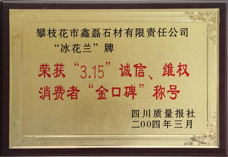 • 榮獲“3.15”誠(chéng)信、維權(quán)消費(fèi)者“金口碑”