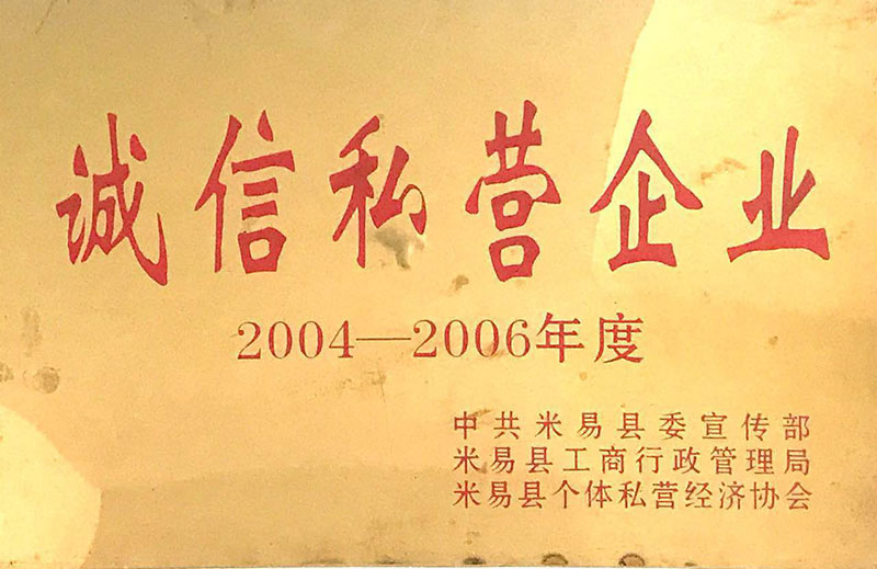 • 榮獲2004-2006年度誠(chéng)信私營(yíng)企業(yè)