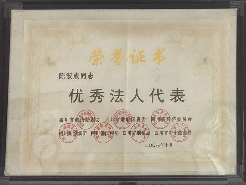 • 優(yōu)秀法人代表榮譽(yù)證書(shū)